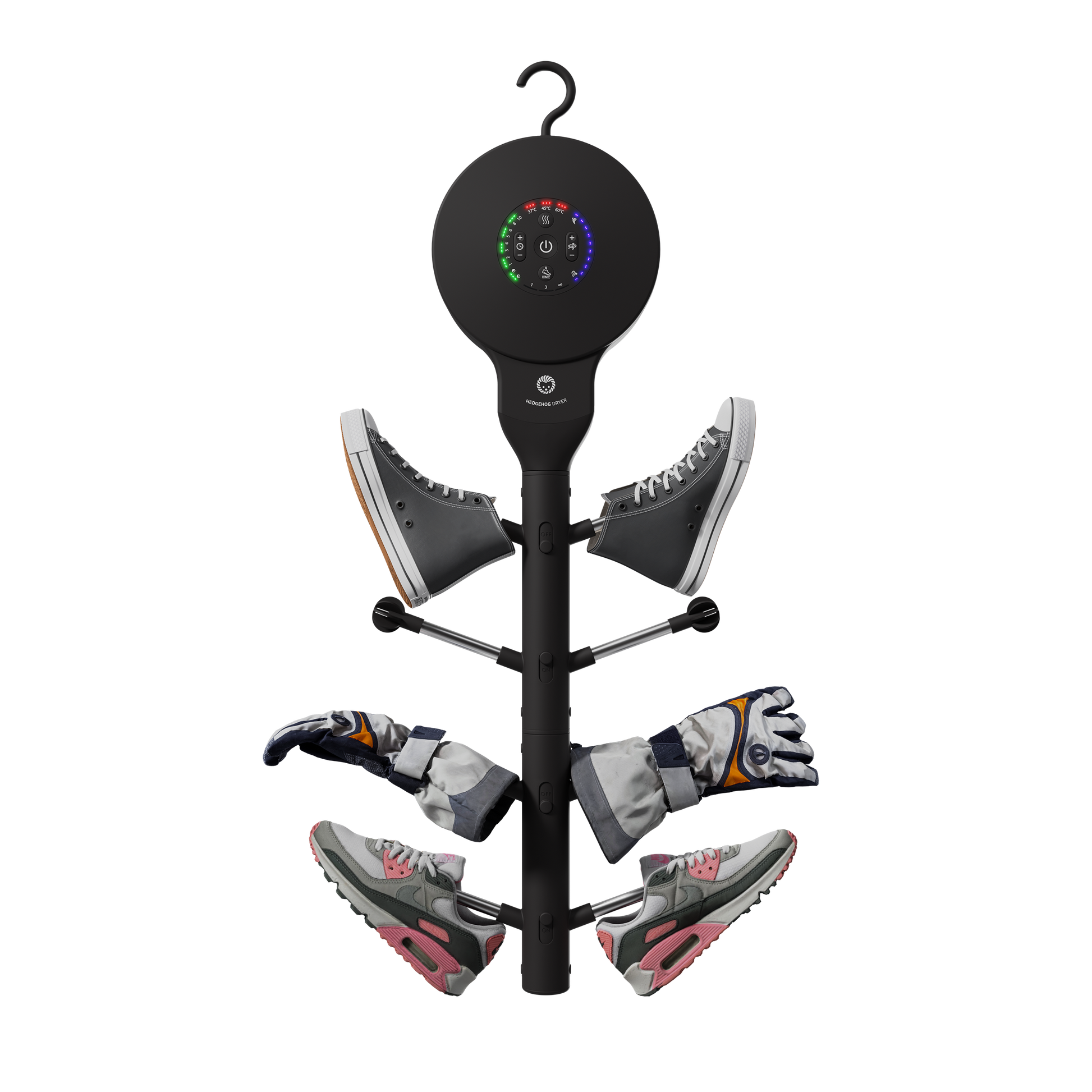 • ✔️ Dries 4 pairs of shoes or gloves (Can be extended to 8 pairs with Hedgehog Wall Adapter)